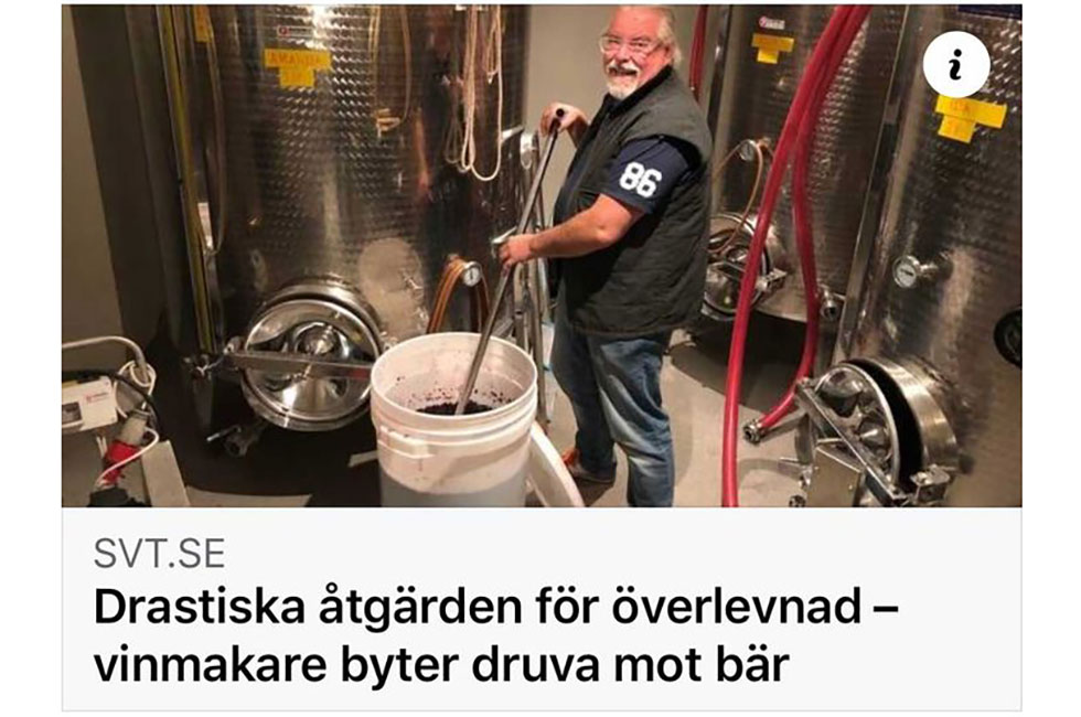 Så fick vår Högberga Vinfabrik vara med i SVT angående hur vi ställer om från vindruvor till blåbär på grund av Covid-19. Så stolta över våra kreativa, proffsiga, passionerade vinmakare som ser lösningar i varje problem. Ska bli riktigt intressant att följa blåbärsvinets utveckling i väntan på att åter kunna åka till Toscana och skörda våra årliga 10 ton druvor.